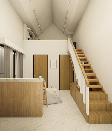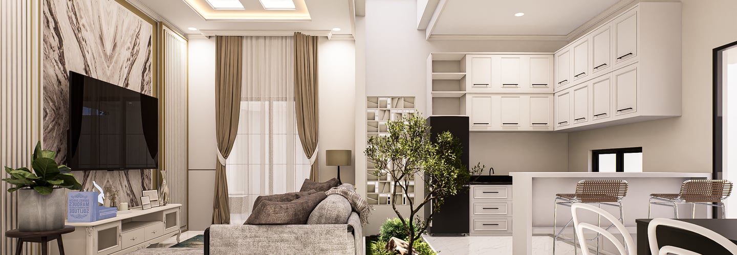 Desain rumah nyaman dan fungsional dan nyaman untuk keluarga.
